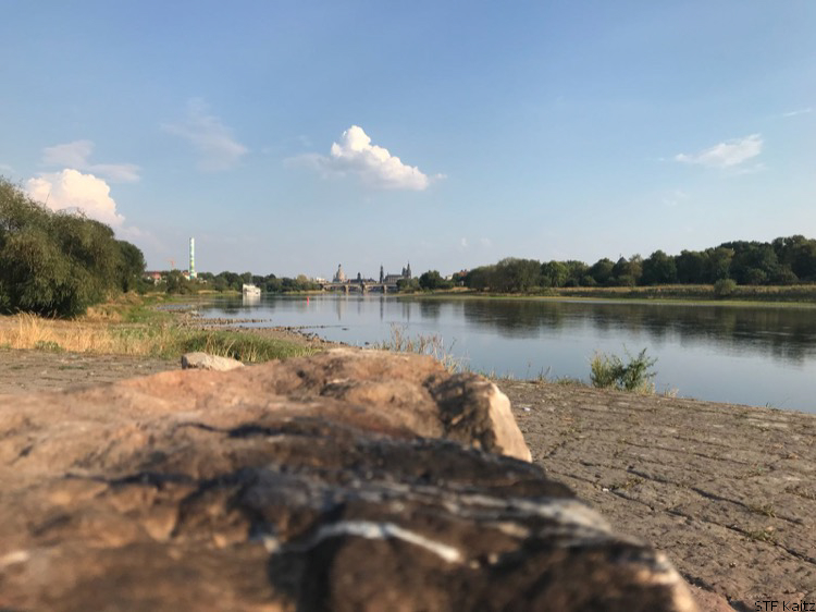 Aufgrund der langen Trockenheit, führt der Kaitzbach so wenig Wasser, dass wir an die Elbe ausweichen mussten. Auch dort haben wir das Wasser „nach Gebrauch“ dem Fluß wieder zugeführt. ,-)