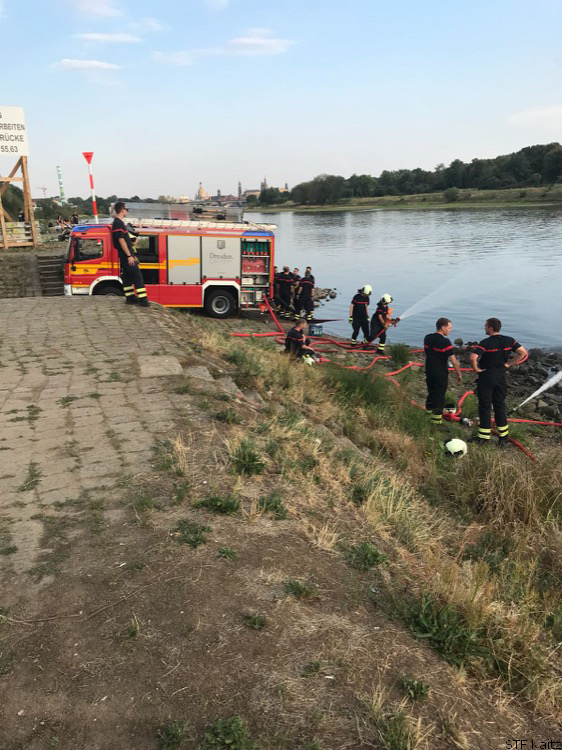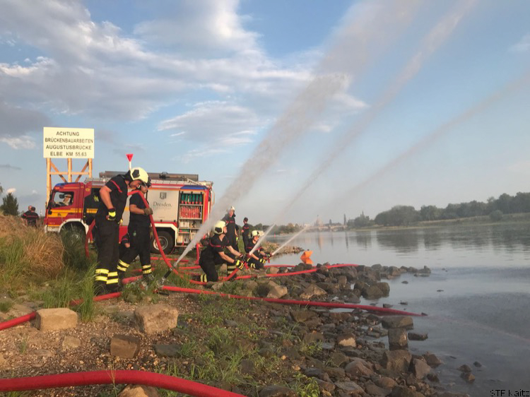 Bei tropischer Hitze waren wir heute zur Ausbildung an der Elbe. Das Thema lautete „Wasserentnahme aus offenen Gewässern“. Im Einsatz kommen wir aufgrund des gut ausgebauten Hydrantennetzes in Dresden eher selten in die Verlegenheit dies zu benötigen. Um so wichtiger ist natürlich das Training, damit dann im Einsatz auch alles reibungslos läuft.