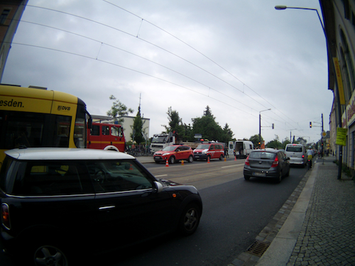 15:12 Uhr – Leipziger Straße (Pieschen) – Moritzburger + Eisenberger Str. – Sandsackverbau (neuer Einsatzabschnitt)